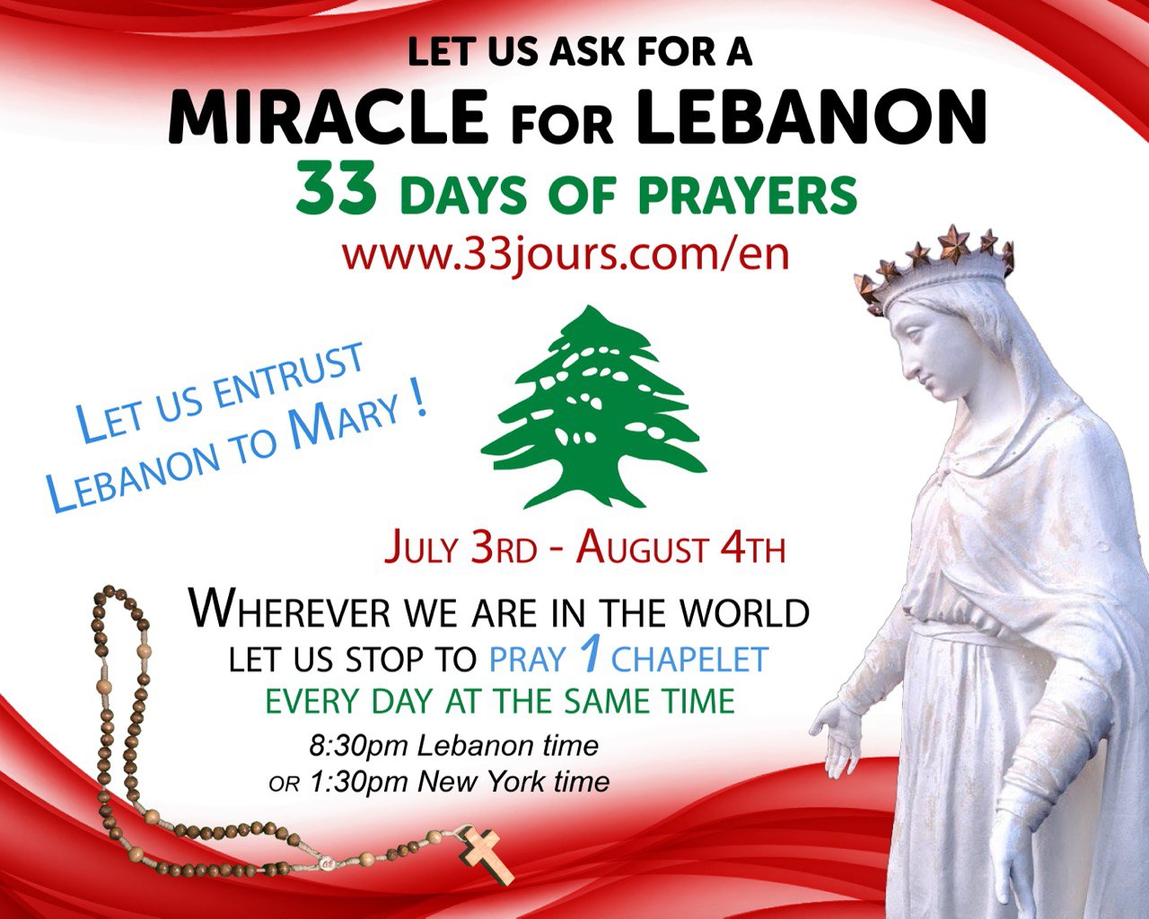 Imagine... tens of thousands of people united at the same time to ask Jesus through Mary for the restoration of Lebanon!